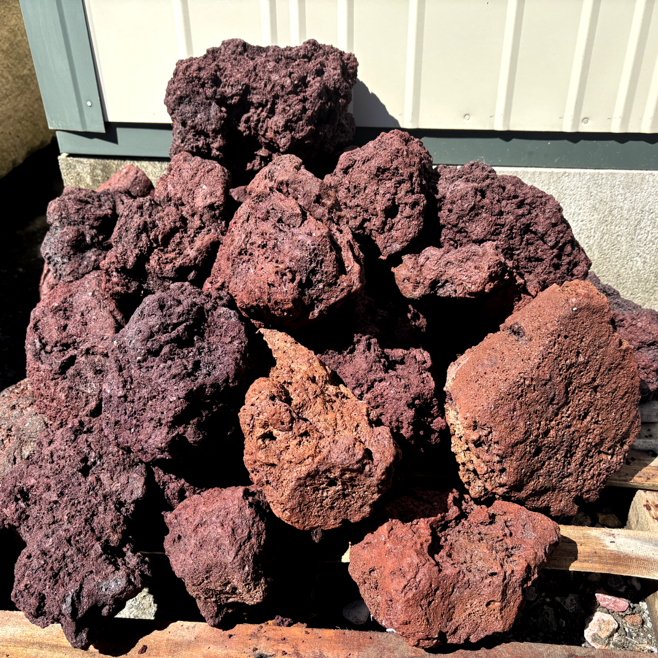 特記:火山活動によって形成された多孔質の溶岩石です。軽量で扱いやすく、独特の赤みとザラついた質感が景観のアクセントになります。多孔質ゆえに保水性があり、苔や多肉植物との相性も良好です。自然石のため形状・色味にばらつきがあります。