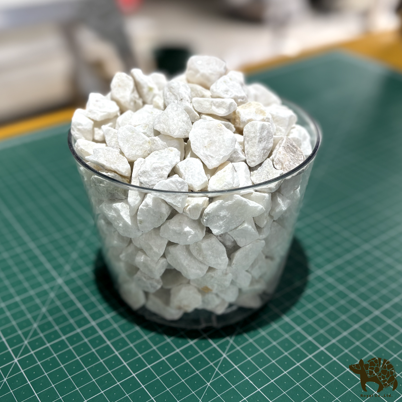 真っ白、石英質な石でホワイト色を求めるならうってつけの砂利です。